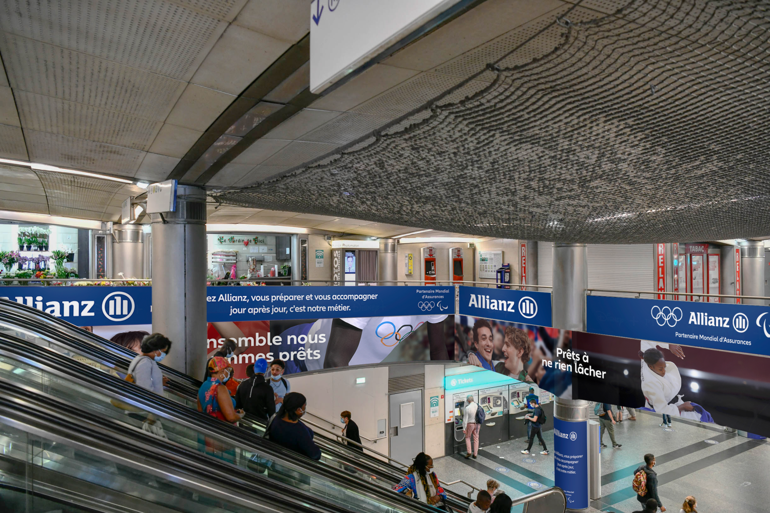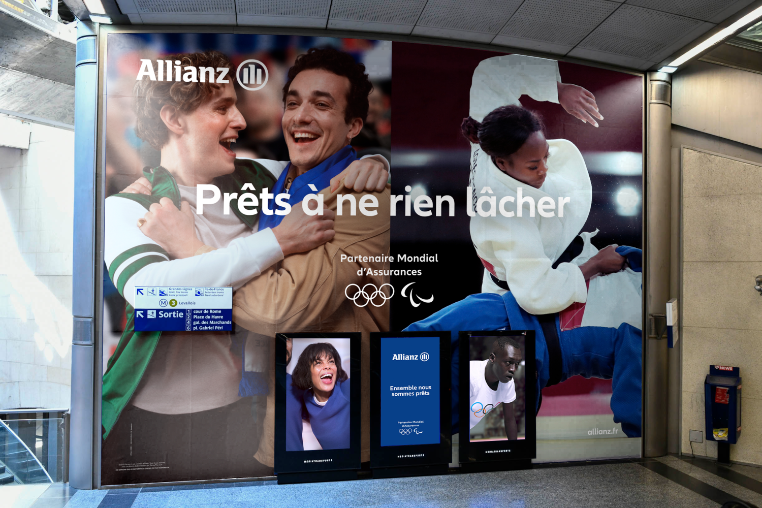 Afin d’amplifier cette campagne en gare Saint-Lazare, Socialclub et Allianz France ont pensé un dispositif original : un écran géant épousant les formes du logo d’Allianz diffusant les campagnes phares d’Allianz France (« On a tous besoin de quelqu’un sur qui s’appuyer » et « Ensemble, prêts pour Paris 2024 »).