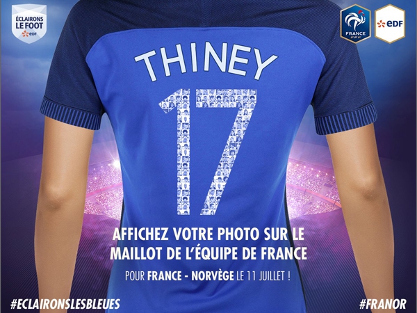 Outre son implication digitale, EDF a imaginé une autre activation afin de permettre aux supporters de manifester leur soutien directement auprès des joueuses de l’Équipe de France à l’occasion de la rencontre face à la Norvège le 11 juillet dernier. La sélection d’Olivier Echouafni a évolué avec des maillots originaux dont les numéros étaient composés des portraits de supporters. Plus de 1 000 personnes ont pu télécharger leur photo sur une plateforme dédiée pour être présents sur le maillot des joueuses. Ce dispositif complète l’engagement d’EDF sur le football féminin qui s’exprime tout au long de l’année à travers son Team d’athlètes qui compte depuis 2015, la joueuse tricolore Laura Georges alors que son équipe espoirs accompagne depuis l’année dernière la jeune Hélène Fercocq.