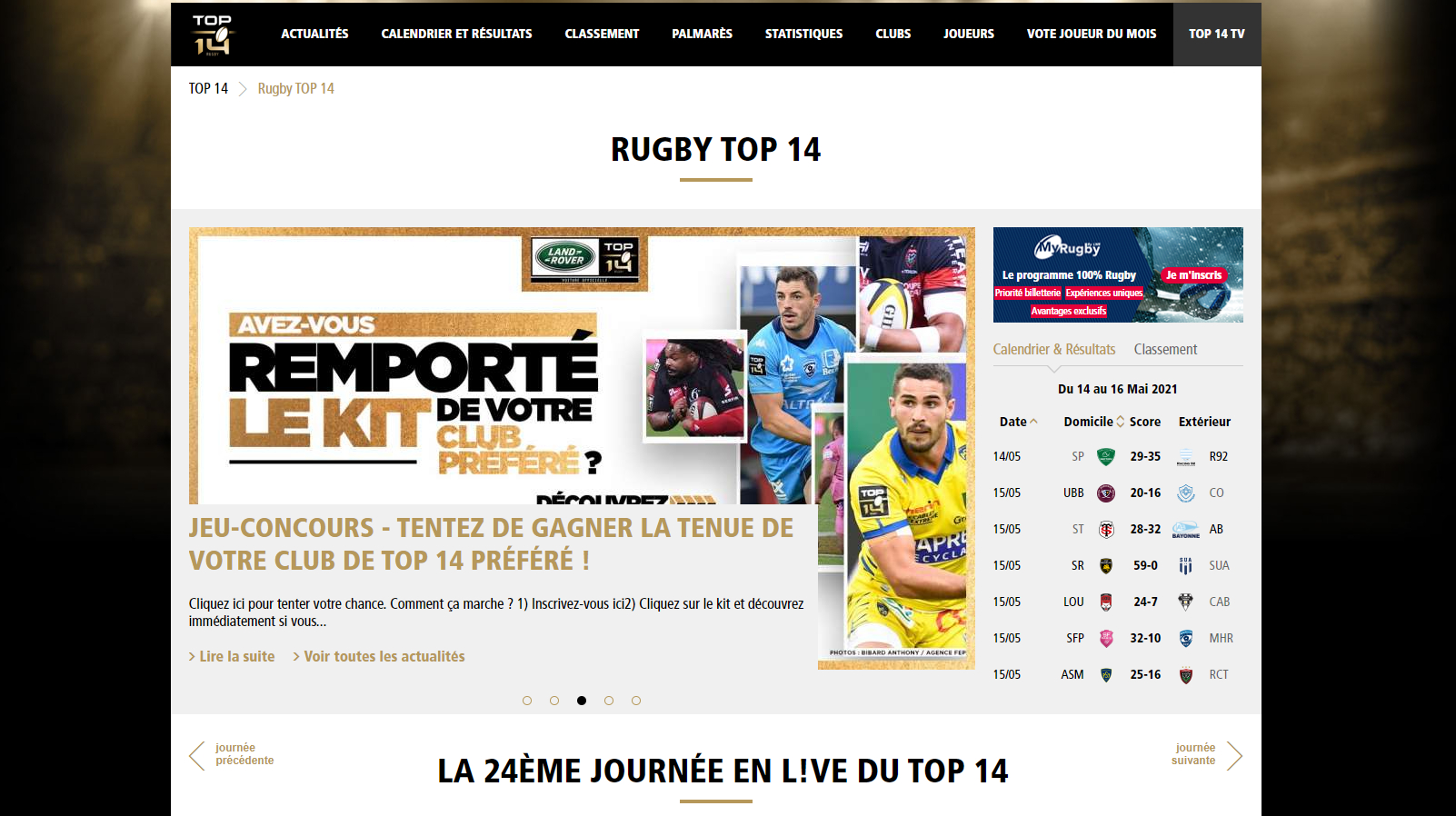 Le TOP 14 est aujourd’hui l’un des meilleurs championnats nationaux au monde, qui attire de nombreux joueurs issus de différents pays de l’hémisphère nord et de l’hémisphère sud, suscitant un réel intérêt de la part des fans du monde entier. La Ligue Nationale de Rugby a élaboré un plan stratégique à horizon 2023 avec une forte ambition digitale qui doit lui permettre notamment de conquérir une nouvelle audience, de renforcer les liens avec le public existant et de s’ouvrir à l’international. Cette ambition se traduit entre autres par le développement d’un site internet TOP14.COM. Dans le cadre de la promotion du TOP 14 à l’étranger, la LNR a confié à Infront X la réflexion autour de la stratégie digitale à mettre en œuvre pour servir un objectif de notoriété et de rayonnement du championnat. Cette mission comprend : la mise en place workshop avec les équipes en charge du projet, le Community management des comptes réseaux sociaux Facebook et Instagram pour les comptes @Top14RugbyUK, la gestion éditoriale du site internet, la création des clips « near-live » et la production des animations, des infographies, des GIFs pour la distribution sur le site web et les réseaux sociaux.