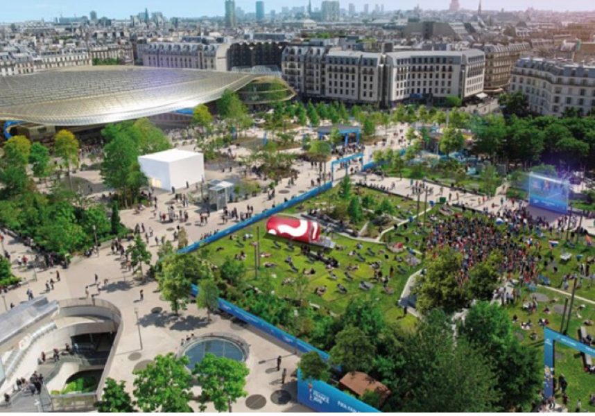 À l’occasion de l’organisation de la FIFA Coupe du Monde Féminine France 2019, la Ville de Paris a souhaité organiser une « FIFA Fan Experience » au cœur de la ville. Cet événement s’est traduit pas la création d’un village d’animation sous la Canopée du Forum des Halles et au sein du jardin Nelson Mandela. Le grand public a pu pendant un mois profiter des nombreuses animations proposées (terrain de foot 5v5, zone esport, animations partenaires…) et assister aux matchs de la compétitions retransmis sur un écran géant, tout en bénéficiant d’un espace restauration (Food trucks, buvettes…).