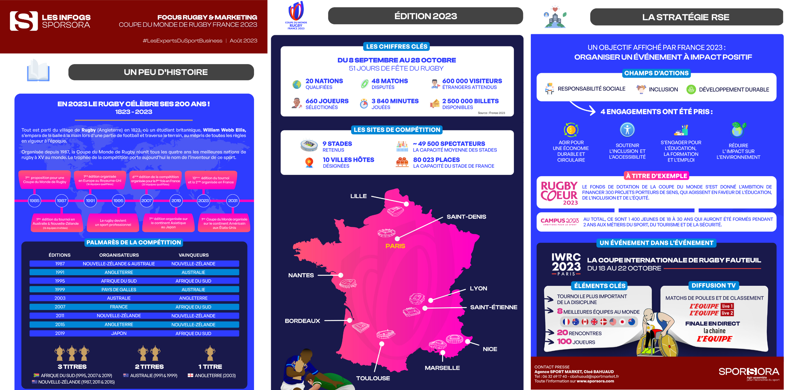 Cette semaine, l’infographie SPORSORA est consacrée aux Coupe du Monde de Rugby France 2023.