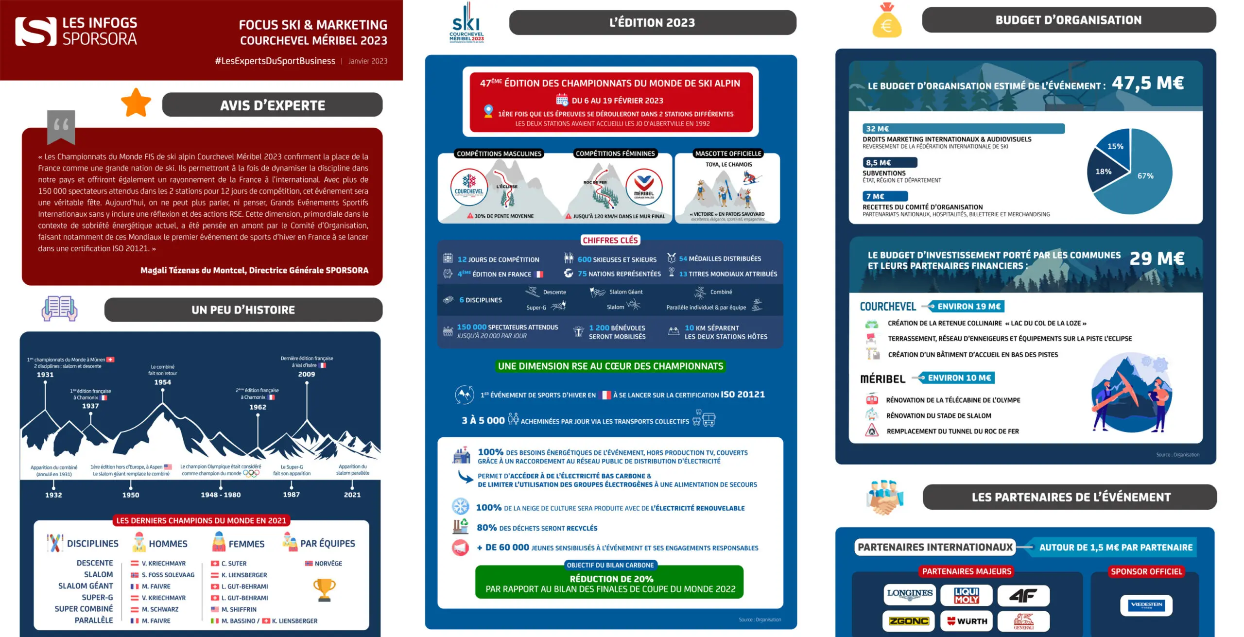 Cette semaine, l’infographie SPORSORA est consacrée aux Championnats du Monde FIS de ski alpin Courchevel Méribel 2023.