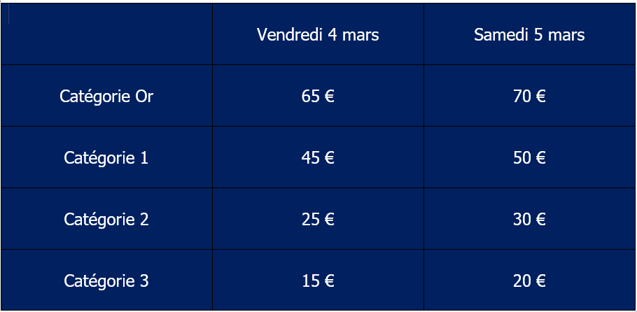 LES PRIX DES BILLETS (TTC/frais de location inclus) :