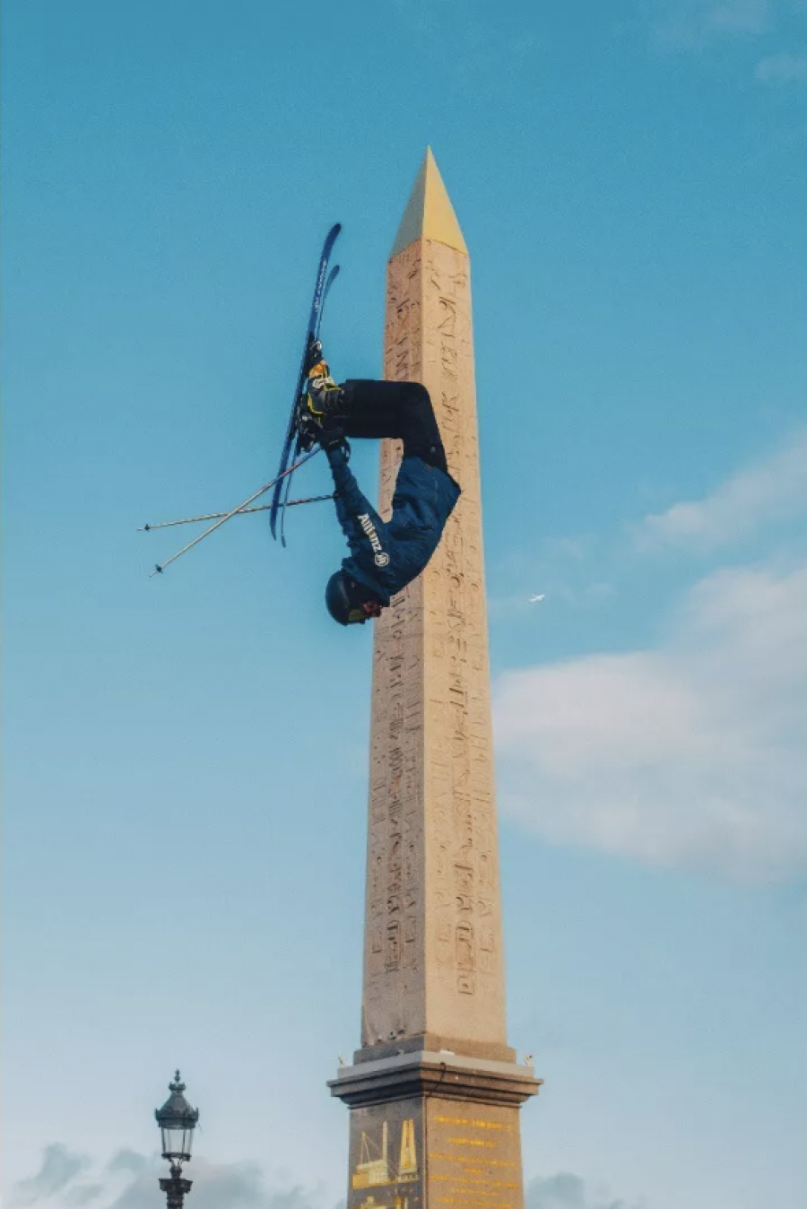 Sous l'objectif d'Odieux Boby, photographe officiel des Jeux de Paris 2024 et auteur des clichés iconiques de BMX, un cascadeur professionnel a réalisé des démonstrations spectaculaires de ski freestyle tout au long de la journée. Odieux Boby, nous offre une version hivernale des photos culte prises à l'été 2024 Place de la Concorde, véritable trait d'union entre Paris 2024 et Milano-Cortina 2026.