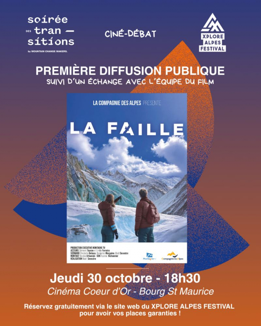 Le XPLORE ALPES FESTIVALet Mountain Change Makersvous invitent à la première diffusion publique du court métrage « La Faille » à Bourg Saint Maurice au cinéma le Coeur d’Or.