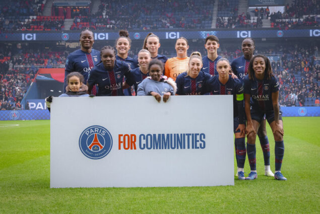 À l’occasion du match PSG–OL Lyonnes, le Paris Saint-Germain a déployé un dispositif global d’inclusion et de solidarité porté par PSG for Communities mettant à l’honneur ses quatre programmes phares : École Rouge & Bleu, Cantine Solidaire, Allez Les Filles et One Team.